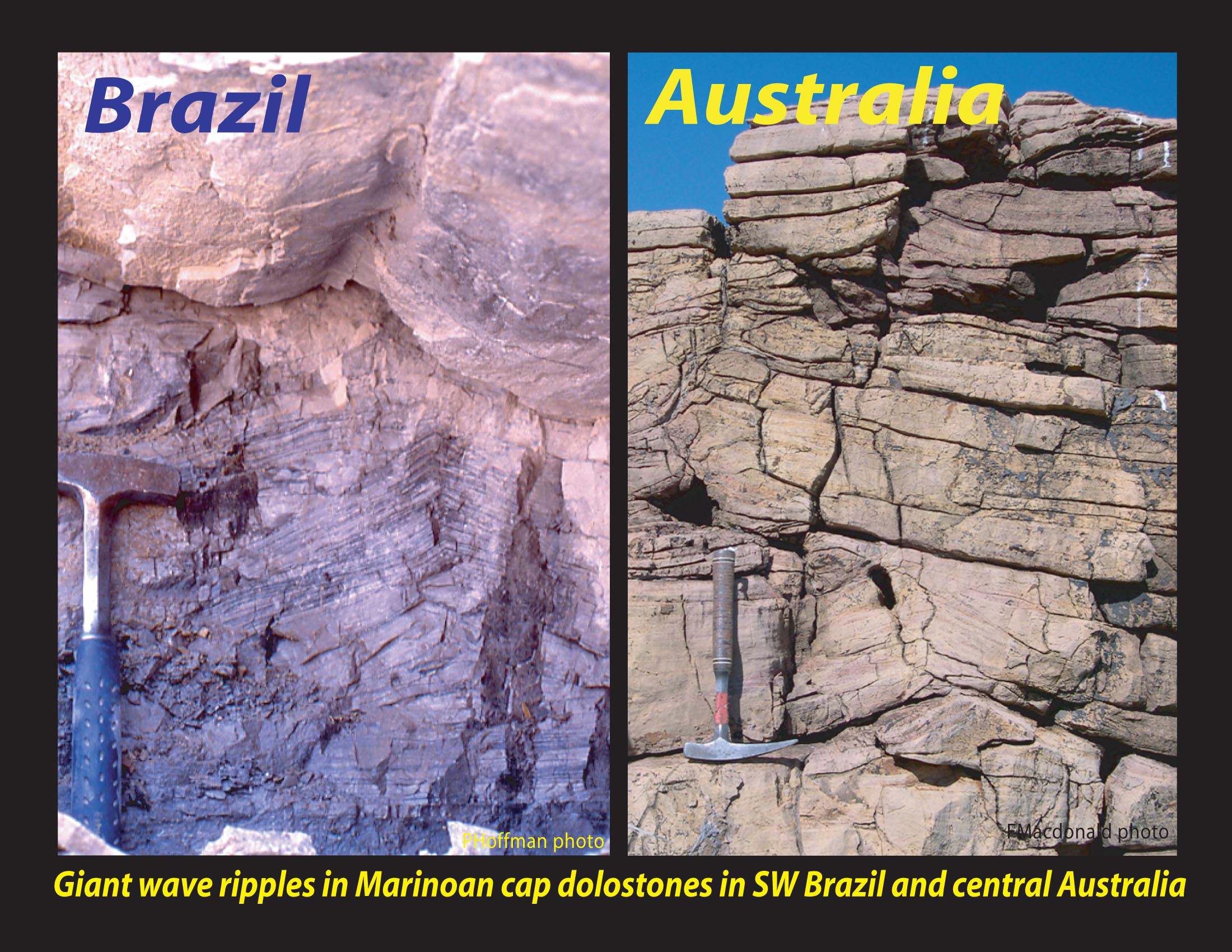 4.22: Characteristic development of giant wave ripples in younger Cryogenian (Marinoan) cap dolostones in Canada, Namibia, Svalbard, Australia and Brazil.