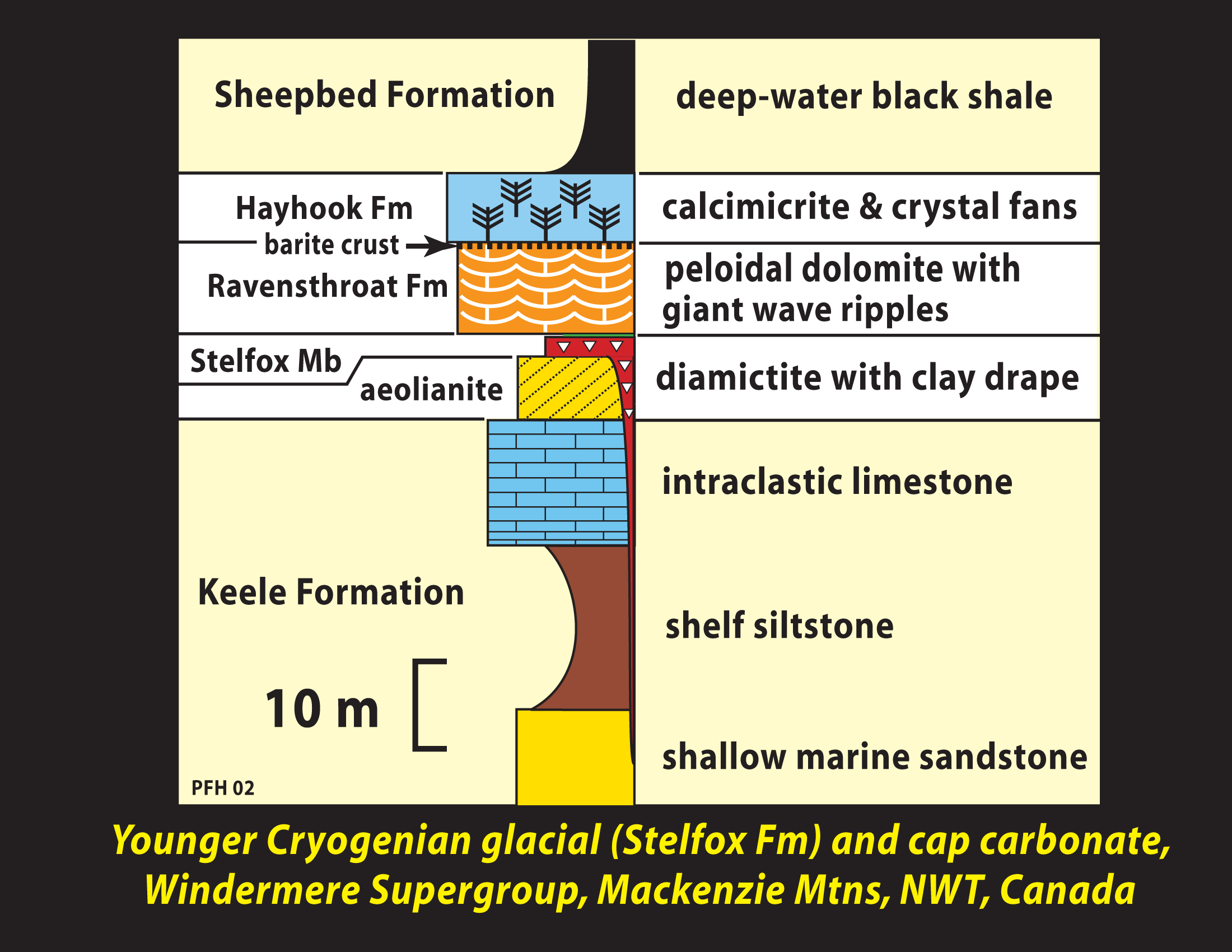 4.33: Stratigraphic sequence associated with the younger Cryogenian glaciation (Stelfox Member, Ice Brook Formation) in the southern Mackenzie Mountains, Canada.