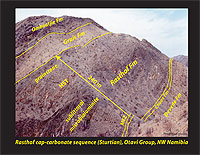 4.36: Stratigraphic sequence associated with the younger Cryogenian glaciation at the edge of the Otavi Group carbonate platform in NW Namibia.