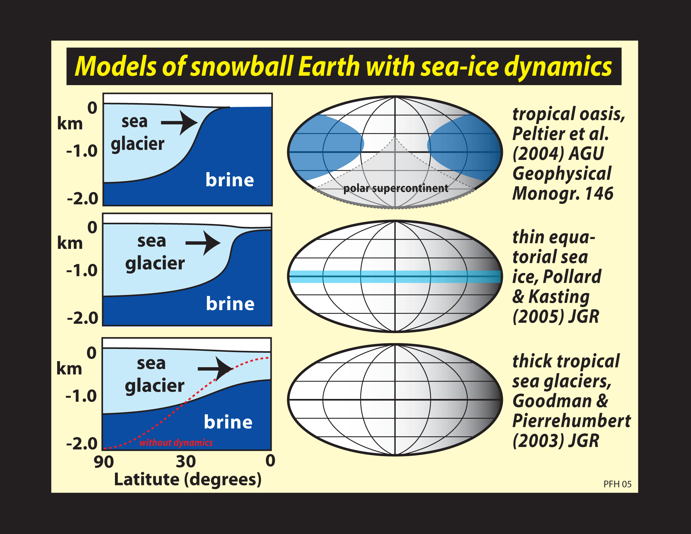 2005). Below: thick tropical sea glacier model ("hard snowball")