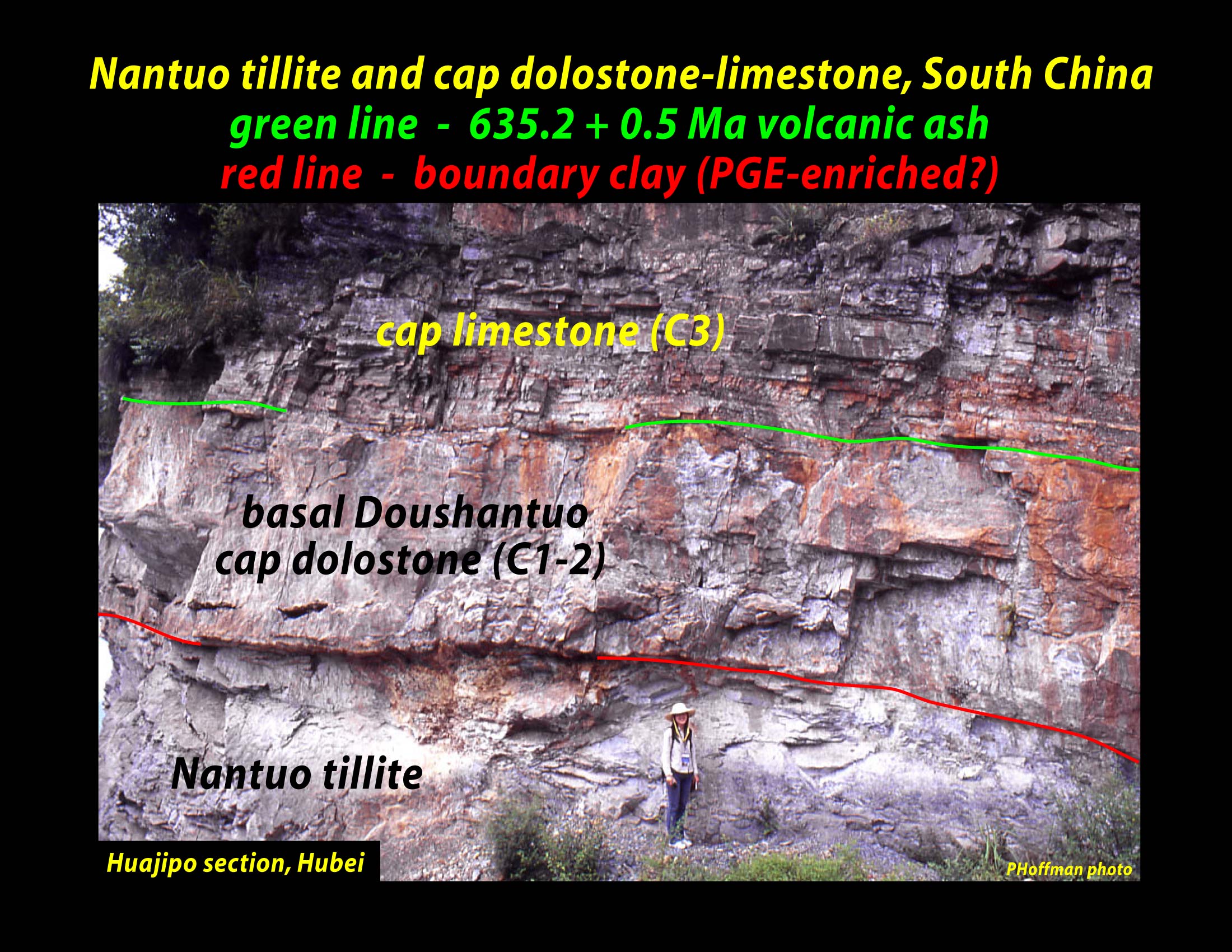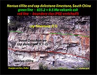 line) lying directly on top of the cap dolostone has been dated at 635.2 ± 0.5