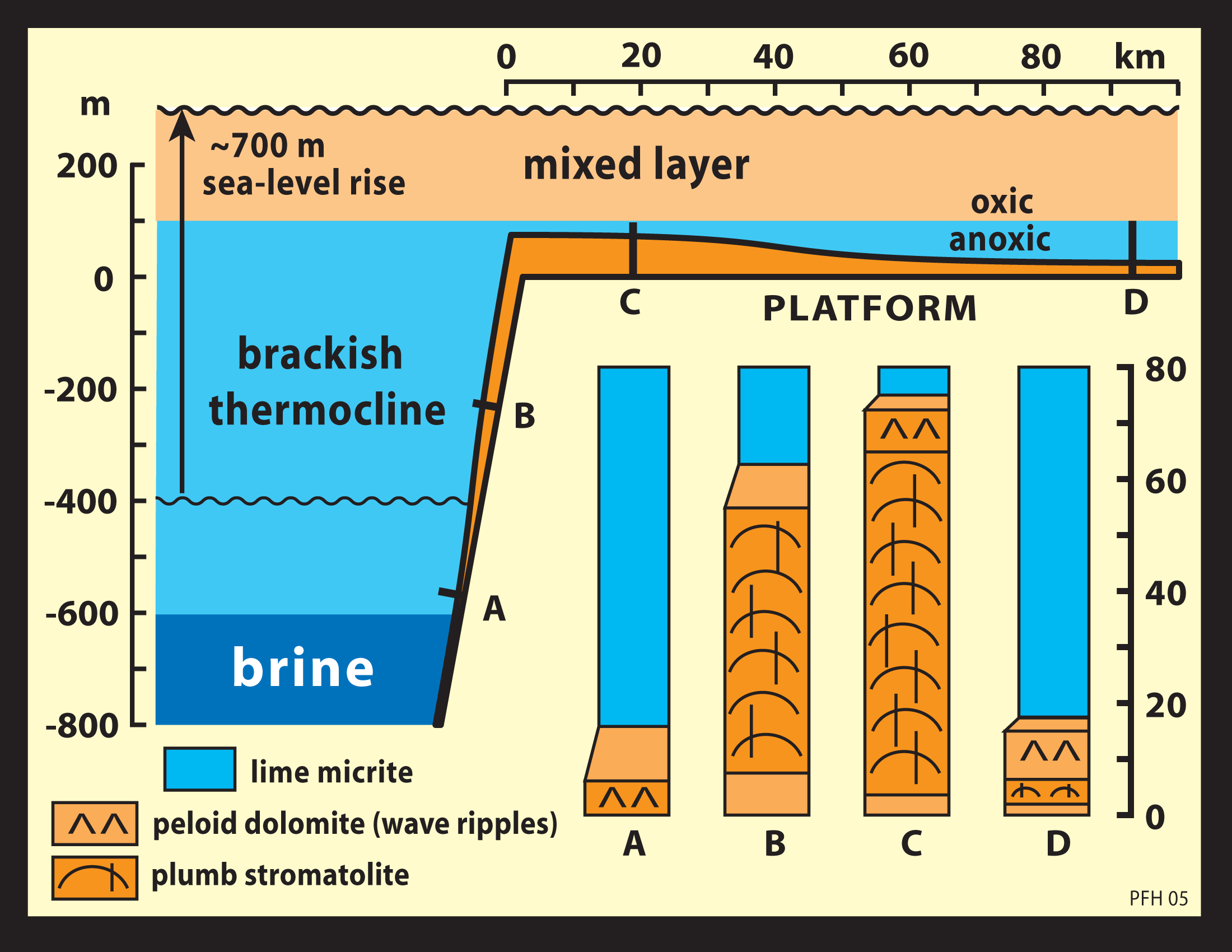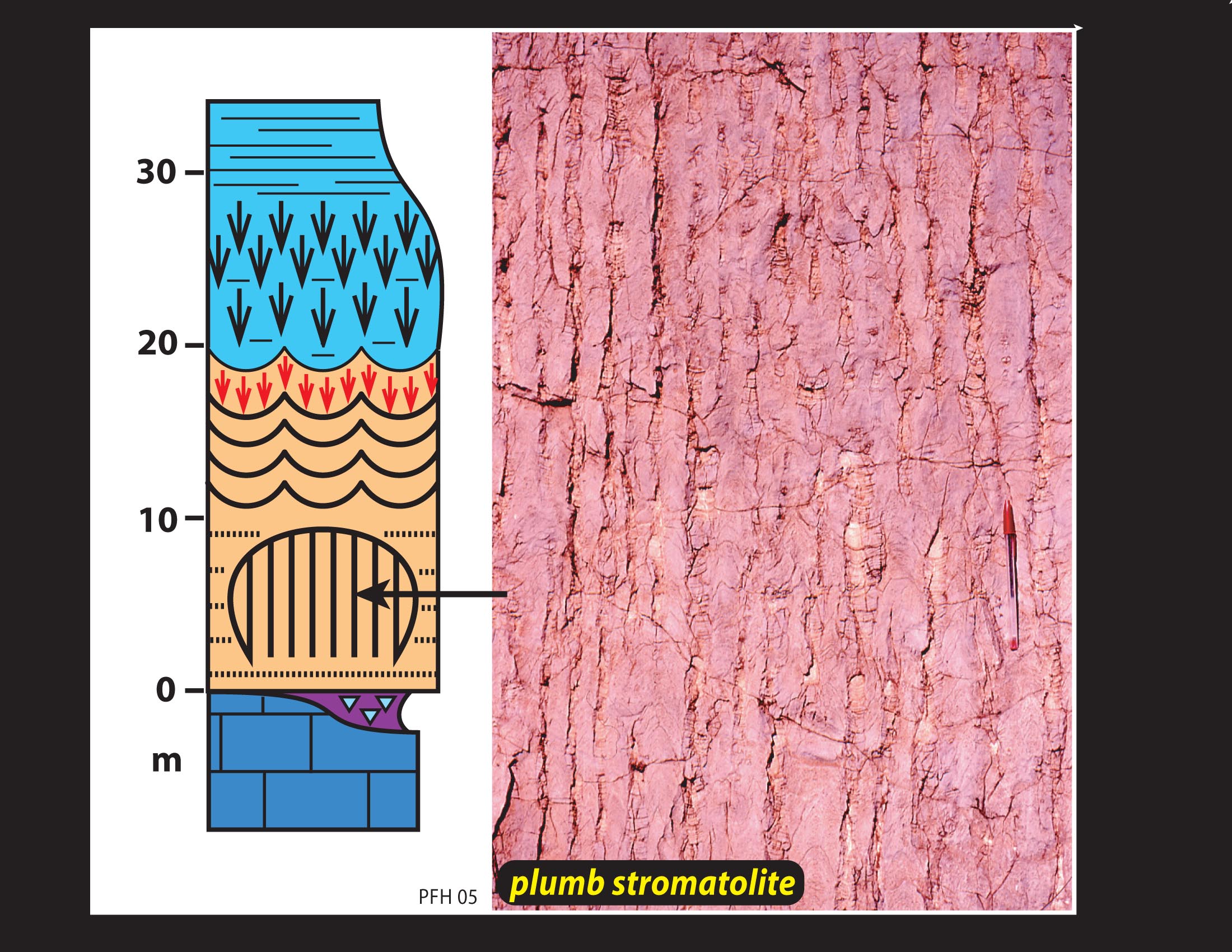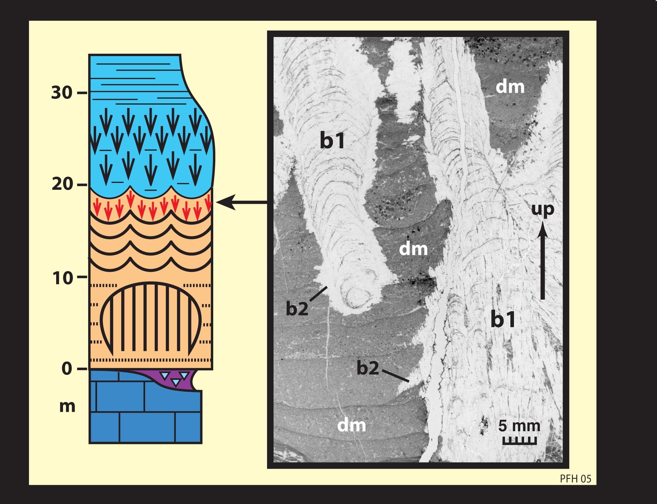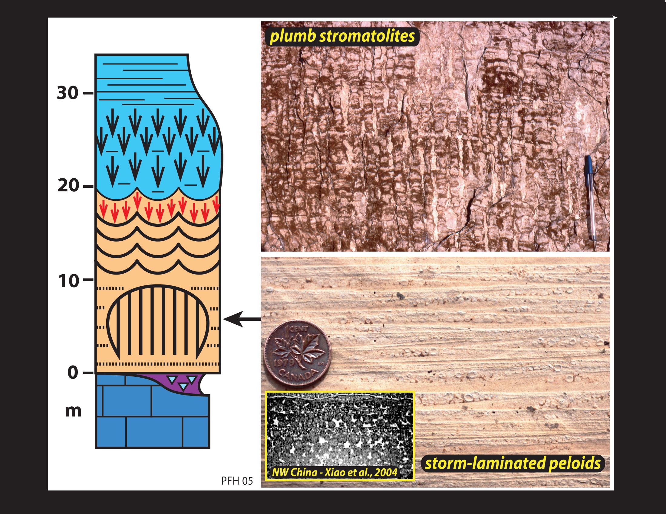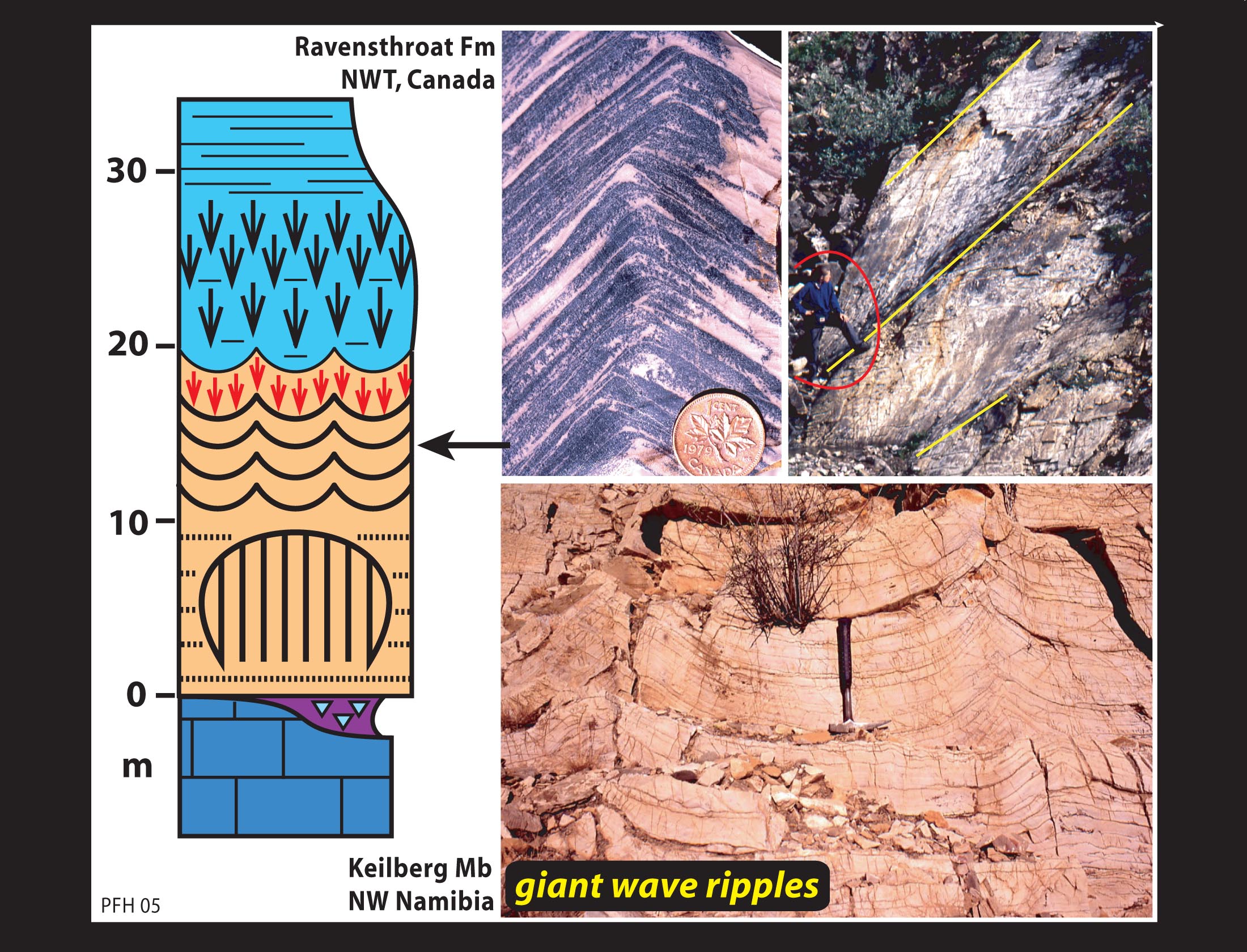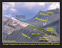 Raventhroat cap dolostone (above), NW Canada (cross-section, left; synoptic