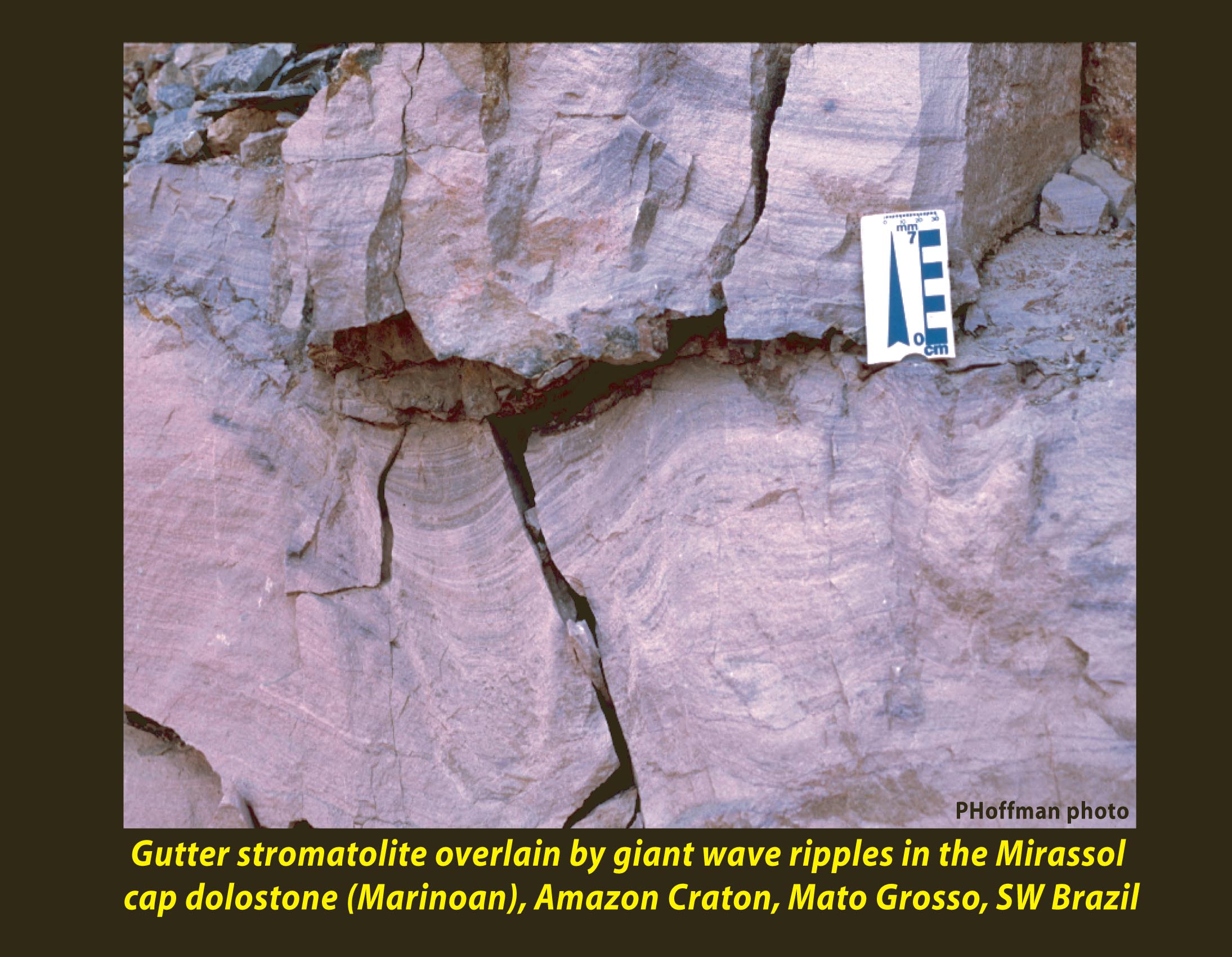Gutter stromatolite overlain by giant wave ripples in the Mirassol cap