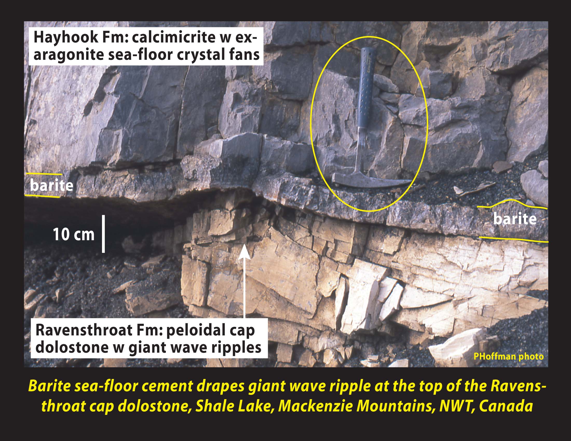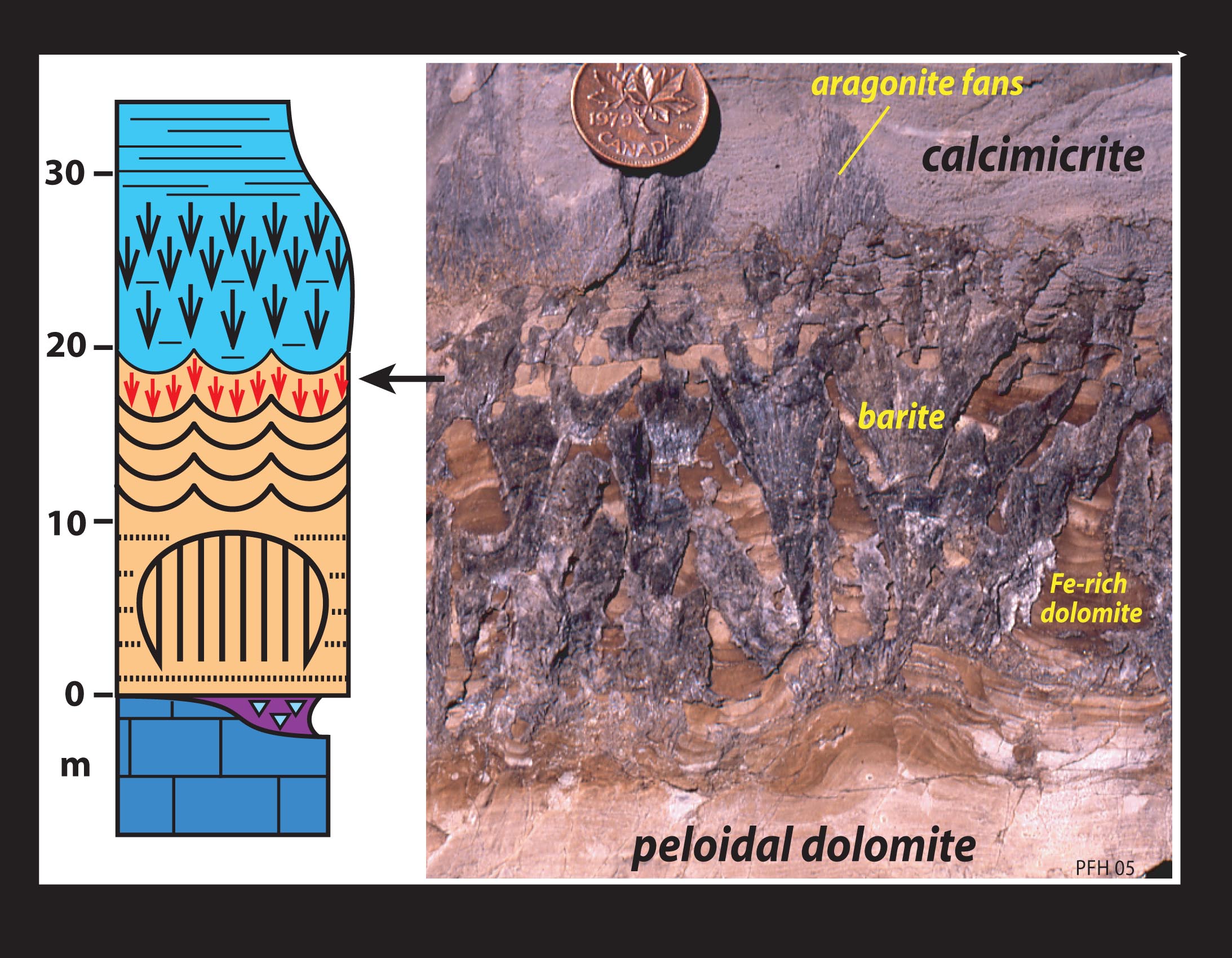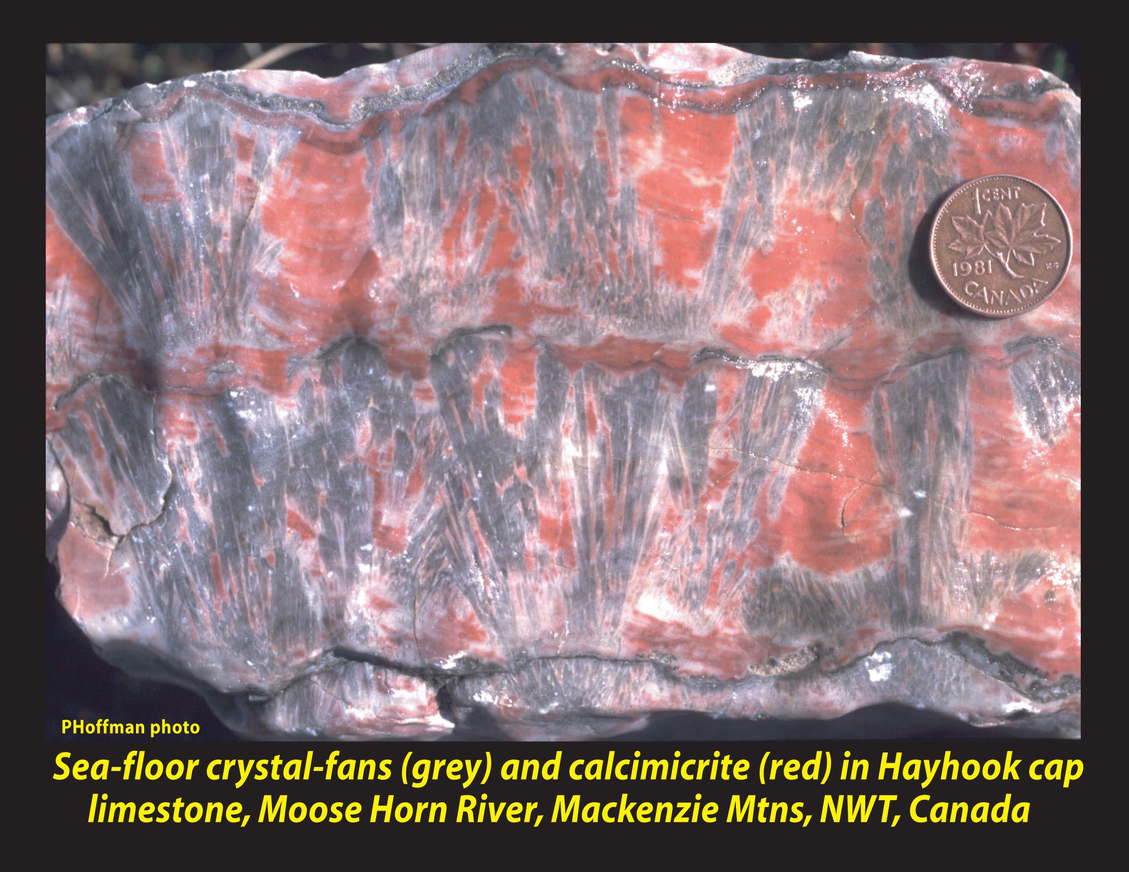 cements (former aragonite crystal fans) in the Hayhook cap limestone, NW