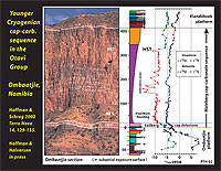 above the younger Cryogenian cap dolostones in Namibia (below) and Canada