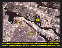 Gorges area of South China. A thin clay-rich layer (red line) occurs between