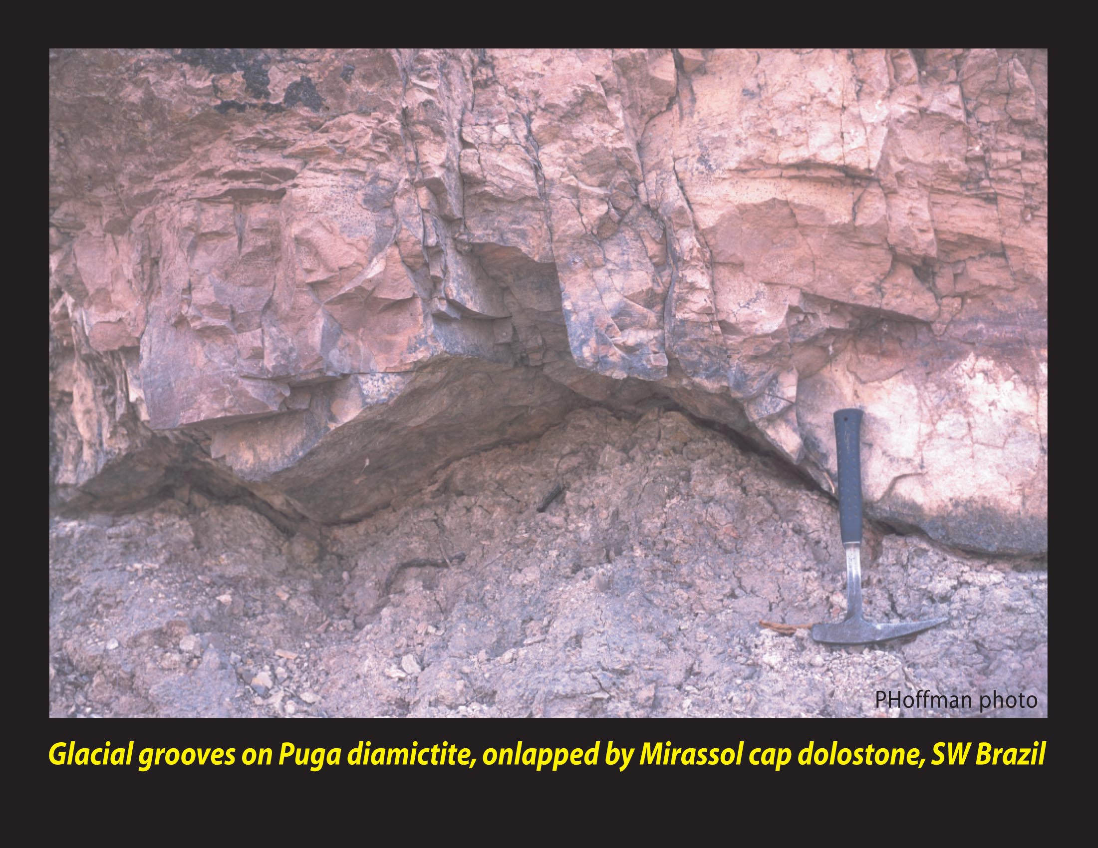 Contact between the younger Cryogenian cap dolostone (CD) and proglacial