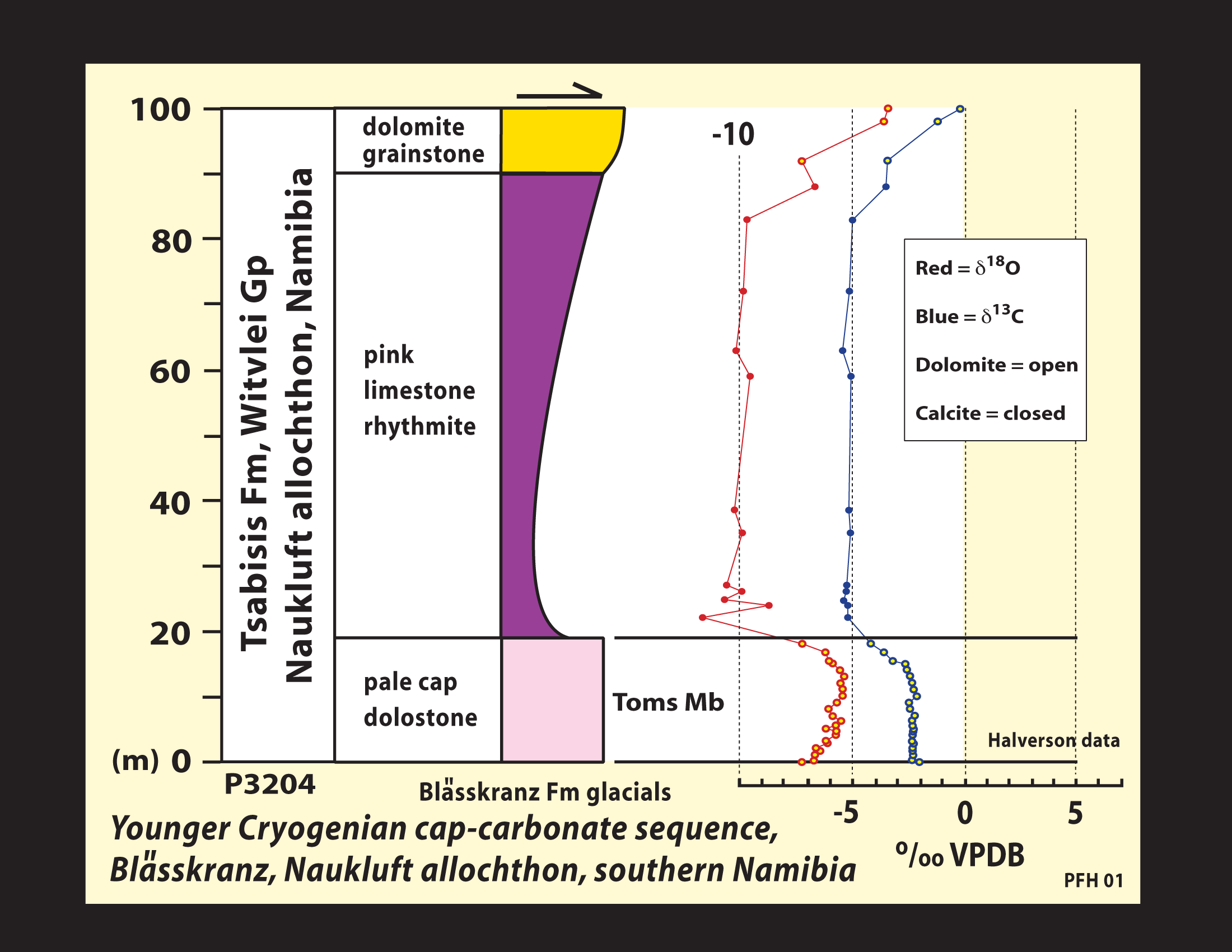 Carbon and oxygen isotopic records (scaled for thickness) of the younger