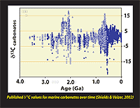 δ13Ccarb values over geological time (Shields & Veizer,