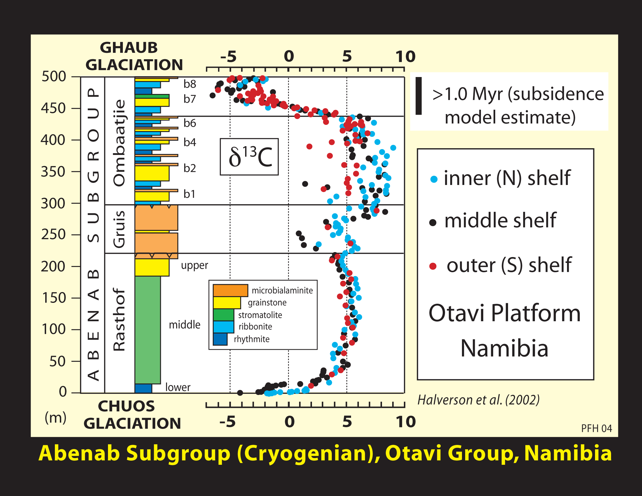 the Otavi carbonate platform in Namibia (after Halverson et al., 2002).