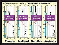 beneath the younger glacial in Australia (type Trezona isotope anomaly),