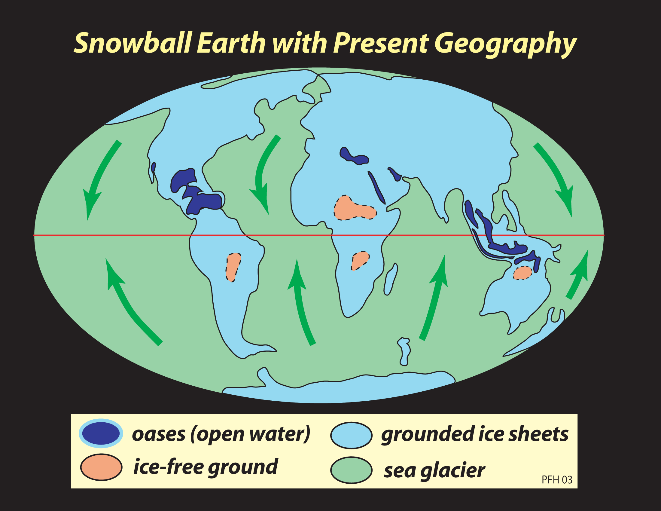 2005). Below: thick tropical sea glacier model ("hard snowball")